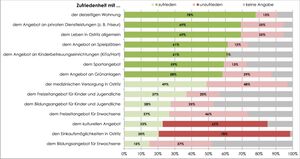 Vom 01.07.2015 bis zum 31.08.2015 hatten die Einwohner der Stadt Ostritz mit dem Ortsteil Leuba die Möglichkeit, mittels Fragebogen, der in 15 Geschäften und öffentlichen Einrichtungen in Ostritz und Leuba ausgelegt sowie auf der Homepage der Stadt veröffentlicht wurde, an einer Umfrage zur künftigen Nutzung kommunaler Gebäude teilzunehmen. Ziel war es, einerseits Bedürfnisse der Bevölkerung bezüglich der Themenbereiche Wohnen, Bildung/Betreuung, Kultur/Freizeit/Sport, Gestaltung des öffentlichen Raumes (Grünanlagen, öffentliche Plätze, Abbruch von Brachen etc.), medizinische Versorgung und Wirtschaft (Gewerbe, Handel, Dienstleistungen, Gastronomie etc.) zu ermitteln und andererseits die Meinung der Einwohner zu den kommunalen Gebäuden zu erfahren.